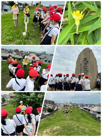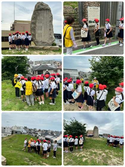3時間目、6年生が帝塚山古墳見学に行きました。