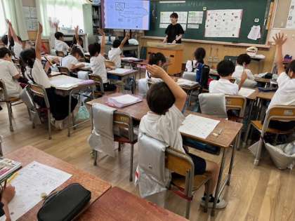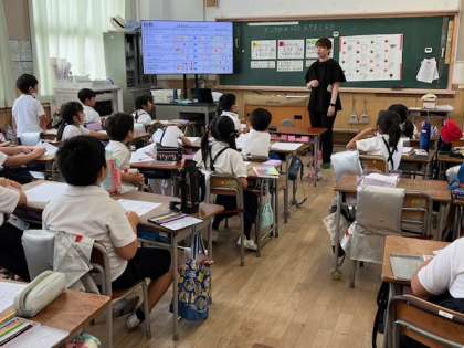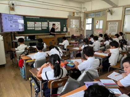 住吉小学校の栄養教諭の先生が来てくださり、食べ物の栄養についての授業がありました。