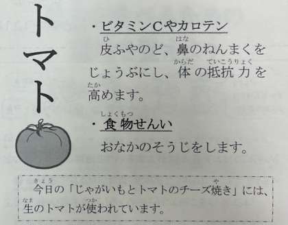 子ども達に好評な「じゃがいもとトマトのチーズ焼き」は、ベーコンとじゃがいもに下味をつけ、生のトマトとともにミニバットに入れ、チーズをのせて機械で焼いた一品です。