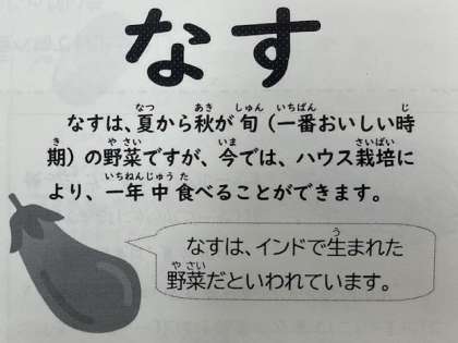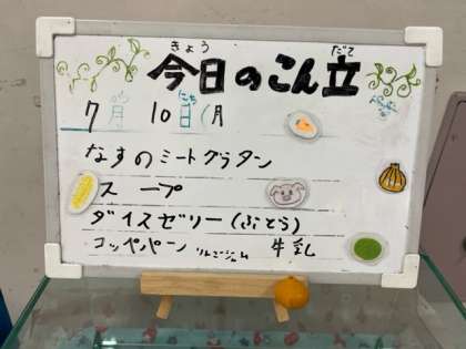 今日は「なすのミートグラタン」でした。子どもたちが苦手としやすい「なす」をミートソース味で食べやすくしています。最近では、関西地方でも「なす」と呼ぶ人が多くなってきましたが、「なすび」という呼び方もぜひ残していきたいものです。