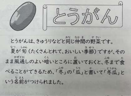 今日は、「とうがんの煮物」が登場しました。だし昆布と削り節でとったお出汁で、鶏肉と下茹でしたとうがんを煮て、しょうが汁、砂糖、うすくちしょうゆで味付けしています。最後に水溶き片栗粉でとろみをつけた煮物です。しょうがの風味がきいた優しい味でした。
