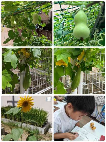 学習園ではヘチマやヒョウタンの実がなっています。