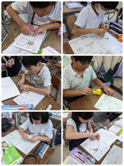 3年生の理科で、枯れたマリーゴールドの花を観察し、種を取り出しました。中の種が見えた瞬間、子どもたちは驚きの声をあげていました。おうちで植える!という声も!