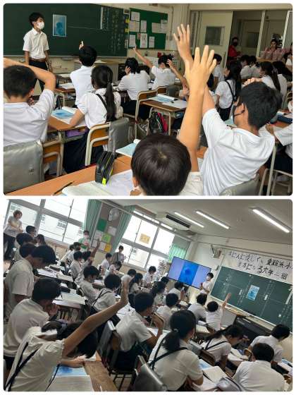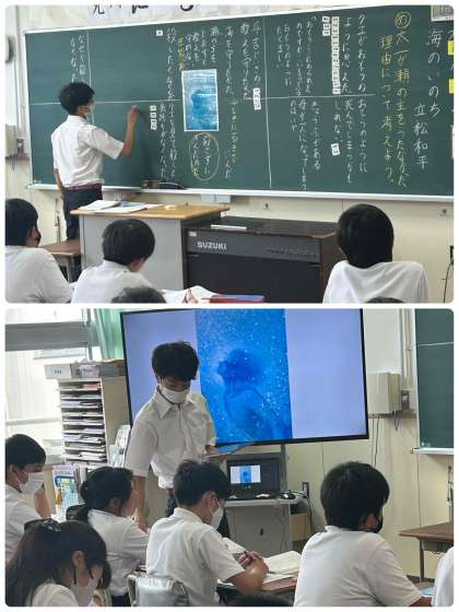 「海のいのち」という物語の読み取りの授業です。一人一人がしっかり読み取り、その理由も述べることができていました。そして友だちの発表を聞いて、自分の考えをより深めることができていました。