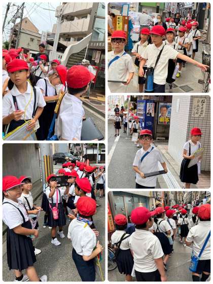 1時間の中で、標識やポスター、点字ブロックなどいろいろな気づきをしていました。