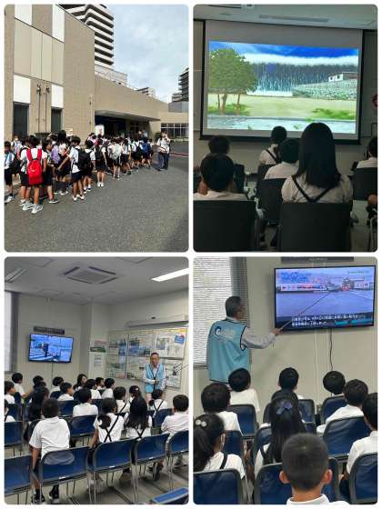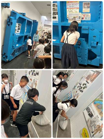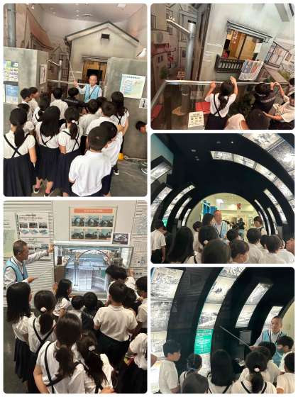 14日,4年生が社会見学で、津波高潮ステーションに行きました。防災学習です。台風などが原因で起こる高潮、地震の後に来る津波、そのメカニズムや被害、どう対応すればいいのかを学びました。