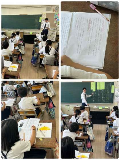 25日2時間目、教育実習生が3年生で研究授業を行いました。教育実習のまとめとして、国語の授業を行いました。