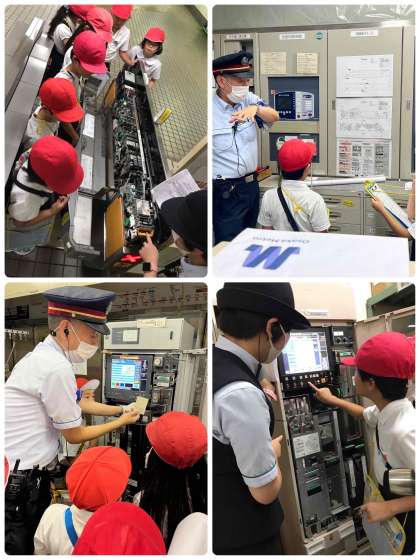 子どもたちは普段見ることができない電車や駅の様子に大興奮で、興味津々に見たり聞いたりしていました。