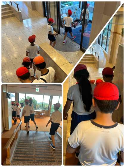 万一に備えて、避難訓練を行いました。部屋からの避難経路をしっかり確認しています。