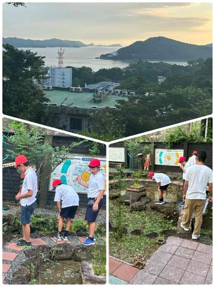 宿舎の上の、めだかの学校、という庭園を散策しています。