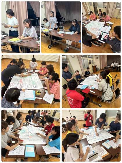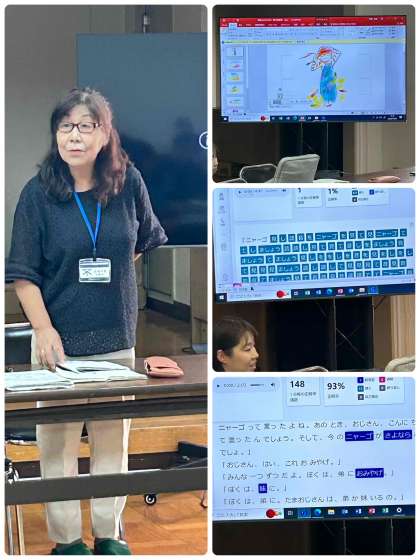 学習者用端末の有効活用が討議の中心となりました。子どもたちもよく使い、メリットも認めながらも、国語科の学習として身につけたい力をどう指導していけばいいのか、さらによりよい協働的な学びとするためにどうすればいいのかを検討しました。録音できる良さと同時に、目の前で工夫したものを聴き合う良さもあることが話題となりました。