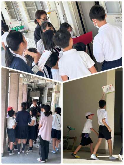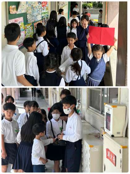 11月の東粉浜フェスティバルに向けて、たてわり班活動を充実させています。今日は赤チームの皆さんが20分休みに,班ごとで先生方のサイン集めを楽しんでいます。