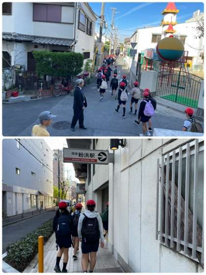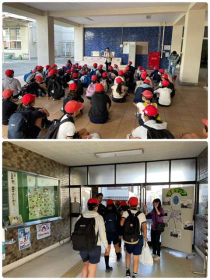 5年生は学年でめあてや諸注意を確認した後、学校の先生や地域の方に見送られて出発しました。