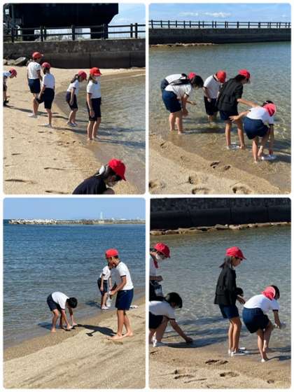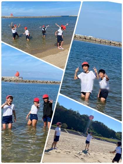 午後は場所をビーチに移動して、ビーチバレーやビーチフラッグをしたり、足を海につけて貝がらや生き物を探したりと各々で遊びました。なかなかできない体験なので、ここでも5年生は楽しんで過ごしていました。