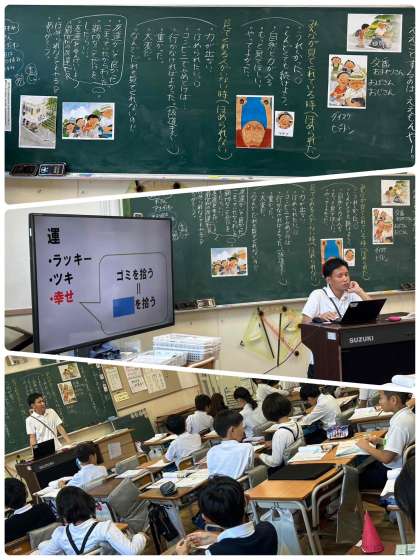 「ええことするのはええもんや」という教材を通して、本当のボランティアとは、見ているときやほめられるときだけするのではなく、相手に必要なことはなにか考え、行動する思いやりだということを学びました。人を思いやる大切さ、感謝することの大切さを話し合いを通じて考えることができました。