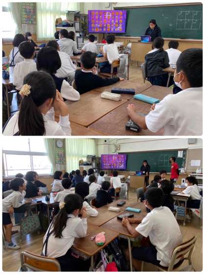 今日のC-NETの授業は季節のお楽しみ授業でした。グループで協力して、英語クイズに答えてポイントをゲットするゲームをしました。せっかくためたポイントがなくなったり、ボーナスポイントがあったり、とても盛り上がりました。