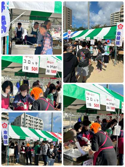 東粉浜地域のテントは、揚げ物とかき氷が大人気で、ずっと長蛇の列でした。