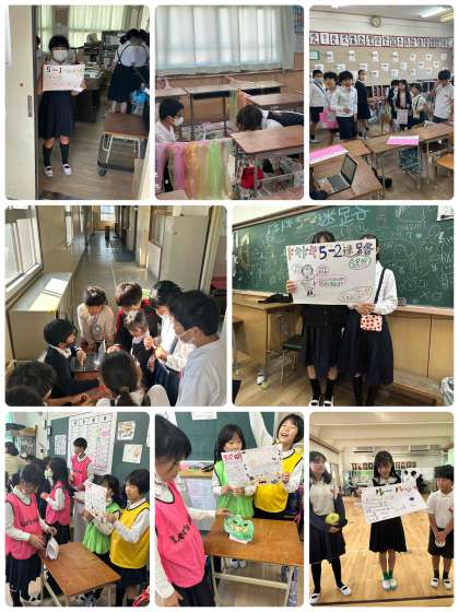 全学級がお店を出して、4色縦割り班でお店を回ります。