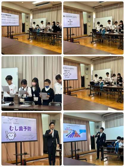 まずは、子どもたちから、虫歯にならないために、ということで調べたことを発表しました。その発表を受けて歯科医の先生にもお話いただきました。