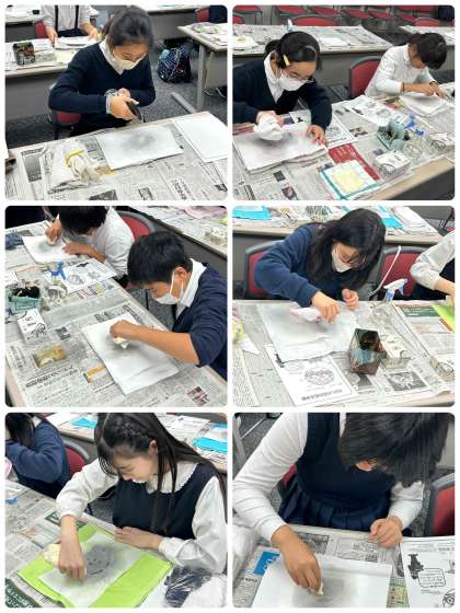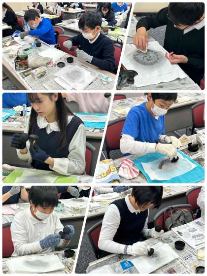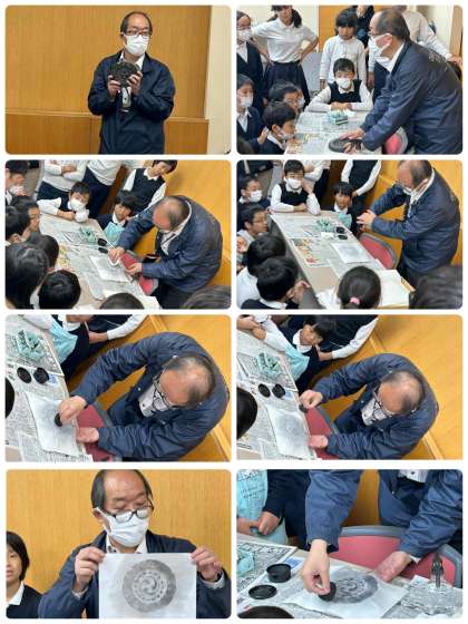 瓦の拓本を実際に取る体験と、遺跡を見て回り説明を聞く体験を行いました。専門の方にご指導いただき、貴重な体験をする事ができました。