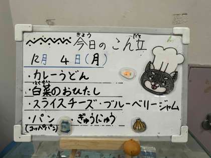 空気が冷え込み、急激に寒くなりました。今日はそんな寒い日にうれしい「カレーうどん」です。うどん屋さながらの「おだし」をとり、おだしの風味をきかせています。体温まる汁めんに子どもたちも大喜びではないでしょうか。