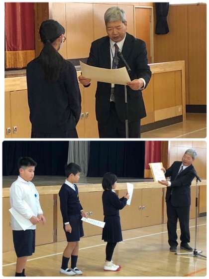 その他学校に届いた賞状をみんなの前で表彰しました。