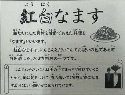 また、おせち料理の一品である「紅白なます」も登場しました。すっきり、さっぱりとした味わいでした。
