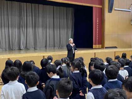 校長先生からは、キャリア教育、いのちの授業、音楽鑑賞会、昔の道具についての特別授業など,専門の方にお越しいただき,本物を体験する授業が続いていることのお話がありました。