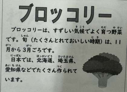 今日は、冬が旬のブロッコリーを使った「ブロッコリーのサラダ」が登場しました。大阪市の給食では、ブロッコリーは旬である11月〜2月に月に1回だけ使用されています。