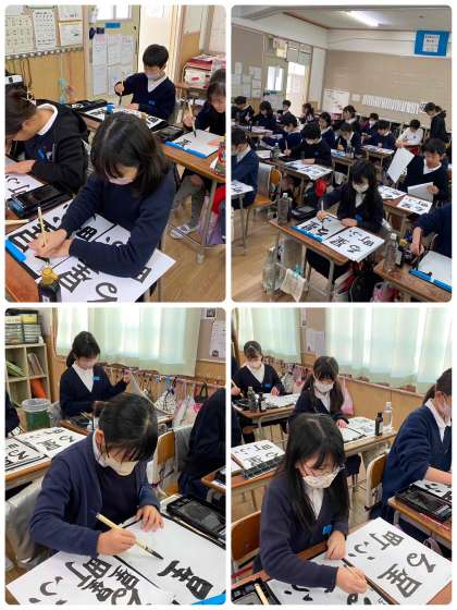 1年間で学習した「書写のかぎ」を生かして、「星ふる町」と書きました。いつもは二字ですが、四字にチャレンジしました。さすが5年生のまとめです。大事なポイントをおさえて、それぞれ味のある作品に仕上がりました。