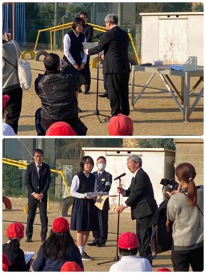 学校に表彰状が届いたので、令和5年度交通安全ファミリー作文コンクールで警察庁交通局長賞を受賞された児童を、表彰しました。