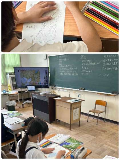 大阪府の学習をしています。地図でカタチを認識した後、周りの府県も覚えていきます。少しずつです身近な地域について、学んでいきましょう。