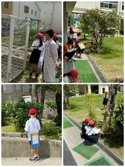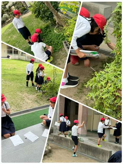 今日は3年生、4年生の子ども達が中庭や学習園で春の自然を探していました。自然を大切にしながら、この時期に見られる身近な生物を、意欲的に見つけようとしていました。