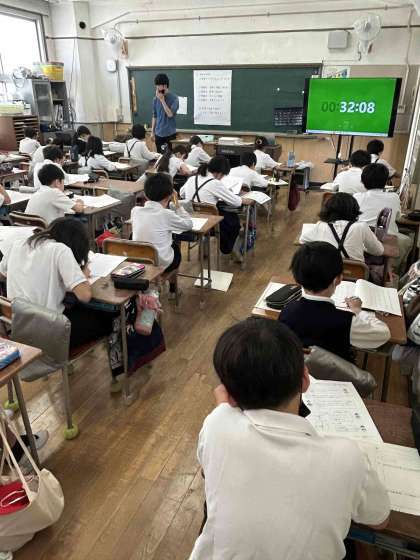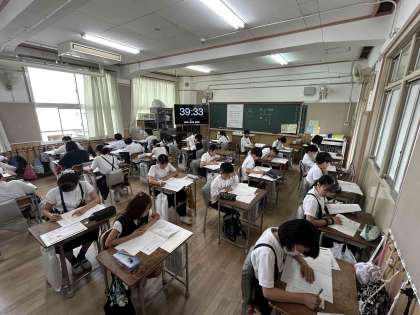 1時間目、5年生が、国語と算数のテストに取り組んでいます。