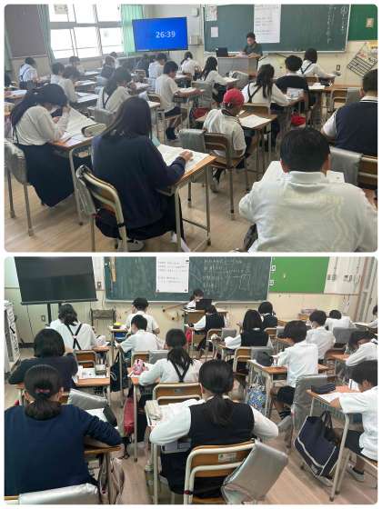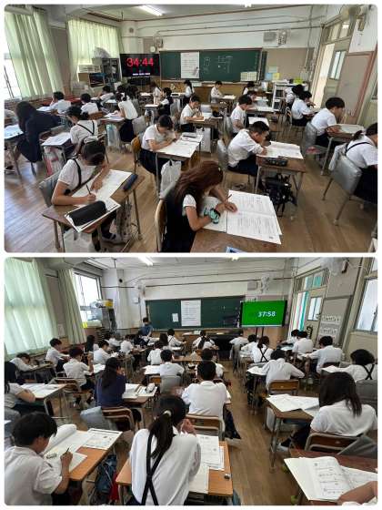 3時間目は、教科横断型問題のわくわく問題にチャレンジしています。どちらの学年も、真剣な表情で頑張っています。