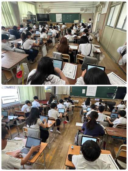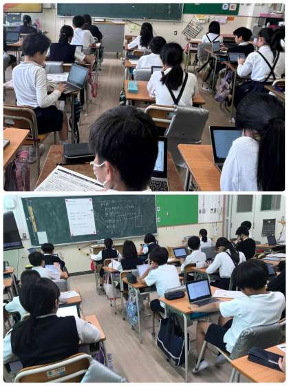 一人一台学習者用端末を使って答えています。