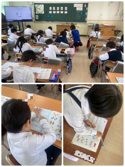 算数では、10までのかずの学習をしています。今日は1から5までの数の書き方や数え方を練習しました。2や4のかき方が難しいので、お家でも練習するようにしましょう。