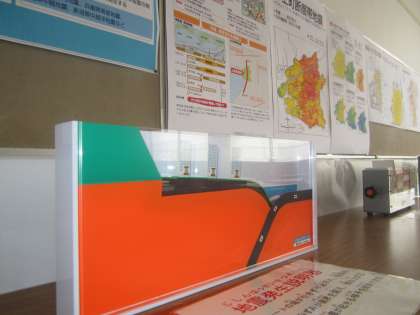 西校舎三階に住吉区役所などの皆様のご協力で「防災学習ルーム」を整備しました。今後の防災教育に役立てていきたいと考えています。