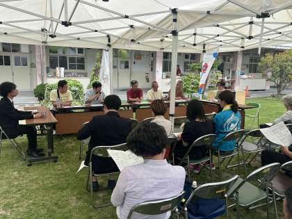 中庭の芝生のメンテナンスでお世話になっています緑化推進委員会報告会が行われました。