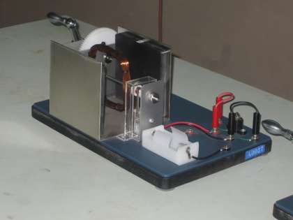 「出前授業」では、発電の仕組みを理解できるようにと関西電力の皆様が、手回し発電機、火力発電の仕組みを説明する実験セットを準備していただきました。