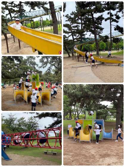 歩いたあとは、大きな楽しい遊具で遊びました。