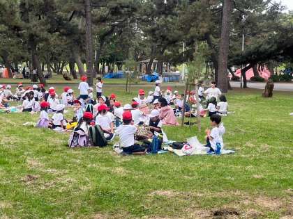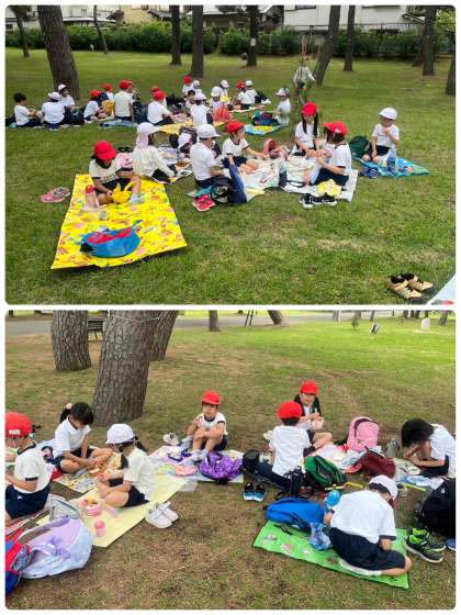 遊んだ後は、お楽しみのお弁当タイム。美味しく食べ終わったら続いておやつタイム。