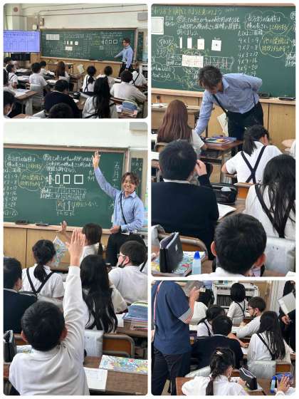 大阪市小学校教育研究会算数部の授業研究として、5時間目に他校からも算数部の先生方が参観される中、子どもたちは、しっかり課題に取り組んでよく考えて発表していました。