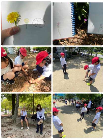 遊具で遊ぶのはやめて、スケッチをしたり、落ちている小枝で家を作ったりと、別の楽しみを見つけている人もいました。