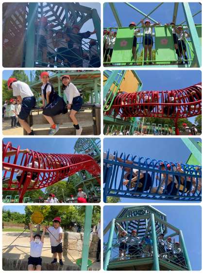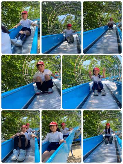 まずは遊具のある公園で楽しみます。でもたくさんの学校や幼稚園も来ていたので、譲り合って、楽しんでいます。