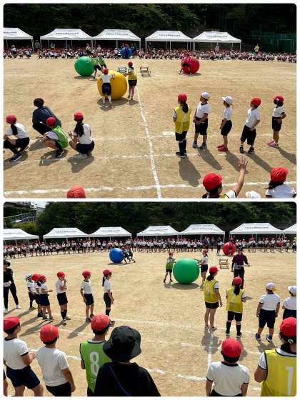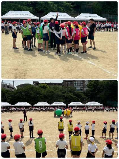 その後開会式の体型に並び、今日はラジオ体操の練習、大玉送りの練習を行いました。大玉送りは白熱して盛り上がっていました。本番を楽しみにしていてください。