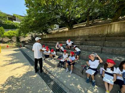 3時間目に、1年2組と3組が体育の学習をしていました。学習のめあてを確かめ、適度に水分補給をしながら楽しんで身体を動かしていました。