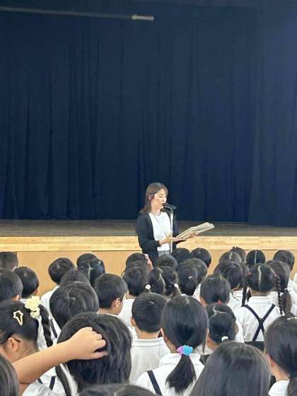 校長先生からは、ありがとうと感謝の言葉をたくさんの子が言えるようになってきているので、さらに、当たり前と思っていることに、その当たり前が実は感謝すること,幸せなことだ,というお話がありました。
