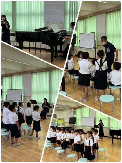 また1年生は、ピアノやバイオリンの生演奏に合わせて合唱もしました。いい体験となりました。