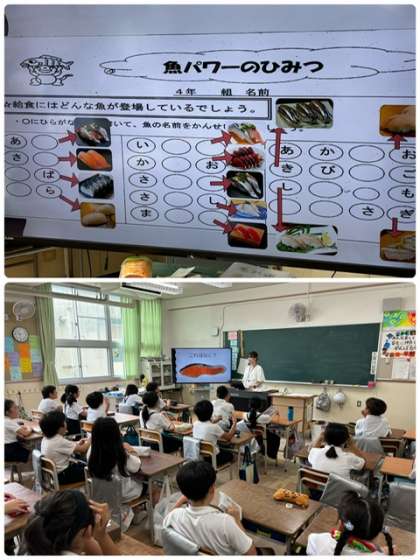 魚のことについて考えようというめあてのもと、給食によく出てくる魚について授業が行われました。